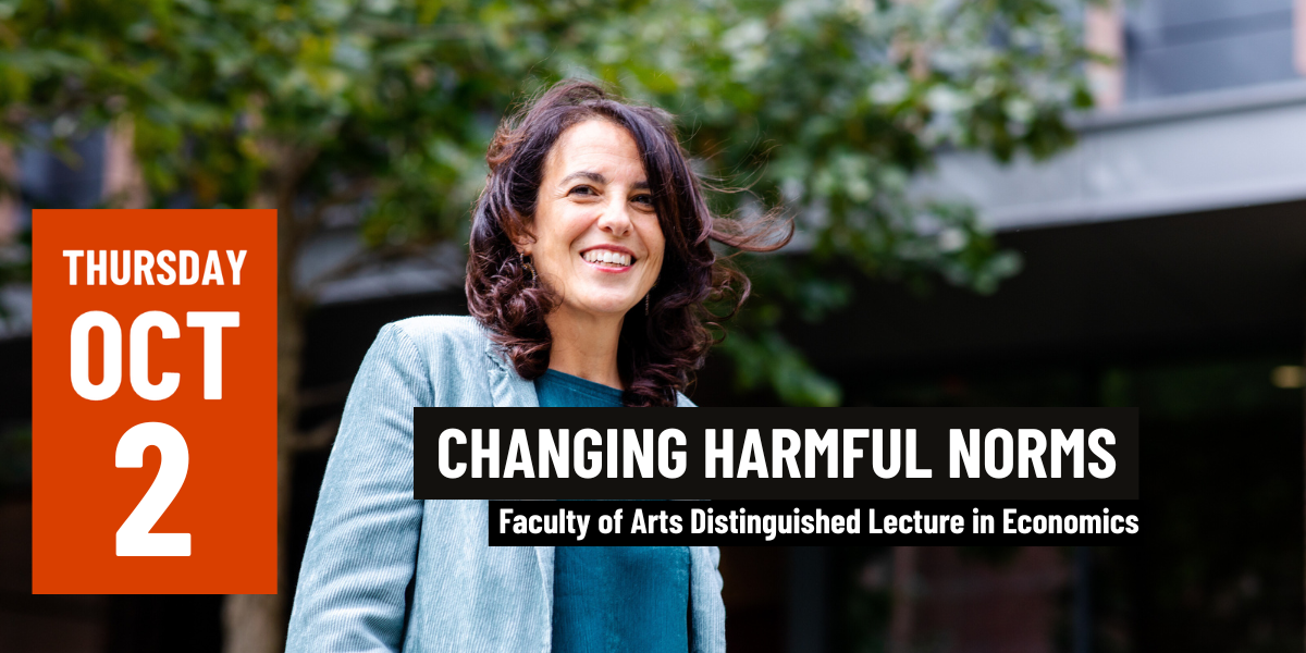 Join Eliana La Ferrera, professor of Public Policy at Harvard Kennedy School, President of the Econometric Society and Program Director of Development Economics for the Center for Economic Policy Research (CEPR) as she delivers the 2025 Faculty of Arts Distinguished Lecture in Economics entitled "Changing Harmful Norms."